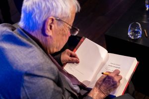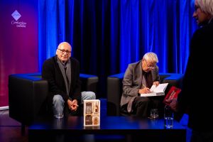Danes smo v Cankarjevem domu gostili enega najvidnejših hrvaških literarnih ustvarjalcev, dramatika in pisatelja Slobodana Šnajderja. Z avtorjem Dobe brona in Angela izginjanja, ki je lani izšel v kultni zbirki Moderni klasiki Cankarjeve založbe, se je pogovarjala Sonja Polanc, prevajalka njegovih romanov v slovenščino, na odru pa mu je dobrodošlico zaželel tudi urednik Andrej Blatnik.